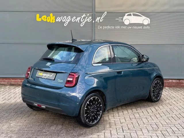 De La Prima is de meest luxueuze elektrische Fiat 500. Die uitvoering bevat standaard al vrijwel alle opties die beschikbaar zijn en heeft extra's zoals een ivoorkleuring lederen interieur dat zelfs uitsluitend hierop leverbaar is. Dit exemplaar stamt uit december 2020, is voorzien van het grote accupakket van 42 kWh en is uitgevoerd in de bijzondere kleur 'ocean green'. Die verandert van donkergroen naar diepblauw en omgekeerd - afhankelijk vanuit welke hoek je 'm bekijkt. Fascinerend. De auto heeft nu zo'n 32.600 km op de teller. De meest recente servicebeurt dateert van maart 2025 en is uitgevoerd bij 28.050 km; factuur aanwezig. De APK is geldig tot en met 15 december 2026. Kortom: je geniet hier zorgeloos van alle luxe en comfort. Leukwagentje.nl is gespecialiseerd in Fiat 500 en MINI. Wij hebben altijd circa zeventig auto's op voorraad. Bekijk ons complete aanbod op www.leukwagentje.nl. Onze score voor klanttevredenheid is uniek. Wij hebben al meer dan 900 recensies mogen...