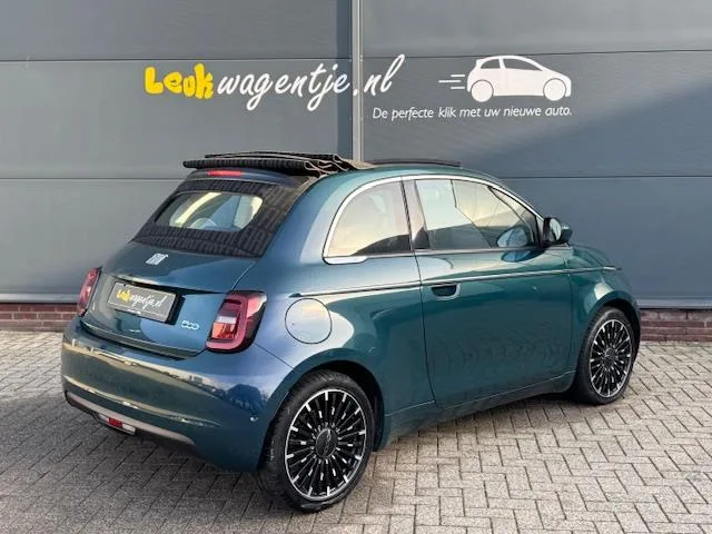 Ocean Green ... de kleur verandert vanuit welke hoek je kijkt van groen naar blauw. Net zoals de oceaan. Fascinerend. Het geeft nóg meer cachet aan deze Fiat La Prima Cabrio - de meest luxe elektrische 500. Het topmodel met álle beschikbare opties. Completer kan niet! Het rijden is een belevenis op zich. Stil en razendsnel zoeft de auto er vandoor. De keuze uit drie verschillende rij-modi beïnvloedt de remkracht en het terugwinnen van energie daaruit. Zoals de bestuurder ook talloze keuzes kan maken uit alle mogelijke instellingen om de auto te personaliseren. Wat níet verandert is de fantastische uitstraling van de auto. PS Voor de zakelijke rijder: dit is een BTW-auto. Leukwagentje.nl is gespecialiseerd in Fiat 500 en MINI. Wij hebben altijd circa zeventig auto's op voorraad. Bekijk ons complete aanbod op www.leukwagentje.nl. Onze score voor klanttevredenheid is uniek. Wij hebben al meer dan duizend (!) recensies mogen ontvangen. En àlle klanten geven ons de maximale score van...