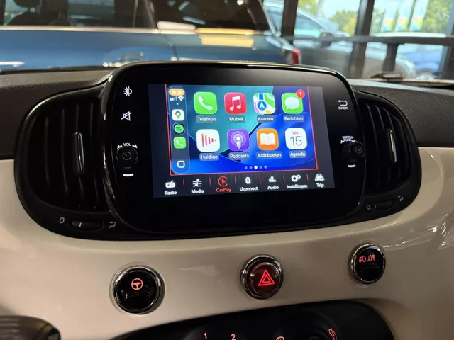 *500C SPORT!*. *CARPLAY*. *LAGE KM-STAND!*. *CABRIO = FUN!*. Italiaanse auto's verloochenen hun identiteit niet. Dat geldt ook voor deze Fiat 500 C. Het blijft een indrukwekkend schouwspel als de elektrisch bedienbare kap opent en sluit. In deze auto profiteert u onder andere ook van: 16 inch lichtmetalen velgen, LED-dagrijverlichting, in delen neerklapbare achterbank en snelheidsafhankelijke stuurbekrachtiging. Te weinig afstand tussen u en de achterligger? De sensoren registreren het direct en de achteropkomend verkeer waarschuwing geeft een signaal. Door de audiobediening op het stuur regelt u het volume zonder moeite. Inparkeren zonder angst voor schade. De parkeersensoren helpen u om moeiteloos in de kleinste parkeervakken te manoeuvreren. Natuurlijk is deze Fiat 500 C voorzien van cruise control. Het maakt niet uit hoe warm het buiten is, want met de airconditioning bepaalt u zelf de binnentemperatuur. Met sportstuur, isofix-aansluiting en centrale deurvergrendeling met...