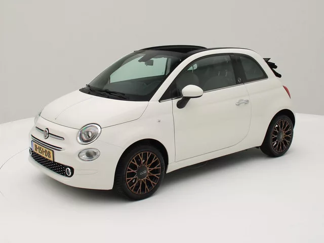 Superleuke en origineel Nederlandse Fiat 500C in een speciale uitvoering met bronzen velgen. Zeer compleet met o.a. Elektrisch bedienbaar cabriodak. 16" Lichtmetalen velgen. DAB radio met Apple Carplay. Parkeersensoren. Cruise control. Meeneemprijs voor deze auto is € 14.000,- incl 2 maanden APK en aflevercheck. Optioneel is ons uitgebreid afleverpakket voor € 950,- (totaalprijs € 14.950,-). Dit pakket omvat: 12 maanden BOVAG-garantie. Grote onderhoudsbeurt. Ten minste 1 jaar APK. Tenaamstelling nieuwe auto. € 20,- brandstof. 5 versn., Handgeschakeld; Modeljaar: 2019; 63 kW; 145 Nm; 2 cilinders; 875cc; Gewicht: 955kg; Laadvermogen: 425kg; GVW: 1.380kg; Max. trekgewicht: 800kg; LxBxH: 357x163x149cm; Wielbasis: 230cm; 35l tank; 0-100 km/h: 11,0s; Topsnelheid: 173km/u; 4 zitplaatsen; 5 l/100km; 6 l/100km; 4 l/100km; 130 g/km CO₂; Energielabel D; Euro 6; Onderhoudsboekjes aanwezig; Onderhouden volgens voorschriften; Aantal eigenaren: 3; 2 sleutels (1 handzender); Wegenbelasting:...