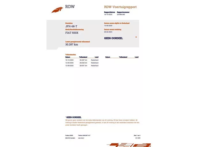 Fiat 500 X 1.5 HYBRID SPORT, LEDER, CRUISE, NAVI, DAB, ECC-AIRCO, CAMERA, PDC, LED, DODEHOEK, KEYLESS, LICHTMETAAL 18". Kenteken: JFH-68-T; Merk: Fiat; Model: 500 X; APK tot: 01-03-2028; Tellerstand: 30287 KM; Carrosserievorm: SUV; Aantal deuren: 5; Brandstofsoort: Hybride (Elektrisch/Benzine); Bouwjaar: 2024; Transmissie: Automaat; Kleur: wit; Motorinhoud: 1469 cc; Aantal cilinders: 4; Motorcode: 46347813; Vermogen: 96 kW / 131pk; Ledig gewicht: 1380 kg; Max. trekgewicht: 1450 kg; Aantal zitplaatsen: 5; Verbruik: 5.4 l/100 km; BTW/Marge: Marge, de BTW is niet aftrekbaar; Lengte: 426 cm; Breedte: 180 cm; Motorrijtuigenbelasting: € 163 - 180 per kwartaal; Emissieklasse: Euro 6. Pakket: Pack Magic Eye. Achteruitrijcamera; Regensensor. Pakket: Pack X Tech. Binnenspiegel automatisch dimmend; Buitenspiegels elektrisch inklapbaar; Keyless entry; Keyless start. Comfort. Regensensor. Exterieur. Achterruitwisser; Buitenspiegels elektrisch inklapbaar; Buitenspiegels elektrisch verstel- en...