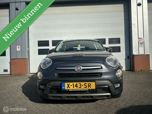 Fiat 500 X Cross 1.4 Turbo MultiAir Cross/Automaat/Navi. Kenteken: X-143-SR; Merk: Fiat; Model: 500 X Cross; APK tot: 27-06-2026; Tellerstand: 142780 KM; Carrosserievorm: SUV; Aantal deuren: 5; Brandstofsoort: Benzine; Bouwjaar: 2018; Transmissie: Automaat; Kleur: grijs; Motorinhoud: 1368 cc; Aantal cilinders: 4; Motorcode: 55263624; Vermogen: 103 kW / 140pk; Ledig gewicht: 1295 kg; Max. trekgewicht: 1200 kg; Aantal zitplaatsen: 5; Verbruik: 5.7 l/100 km; BTW/Marge: Marge, de BTW is niet aftrekbaar; Lengte: 425 cm; Breedte: 180 cm; Motorrijtuigenbelasting: € 199 - 217 per kwartaal; Emissieklasse: Euro 6. Pakket: Navigatie pakket. Bluetooth; DAB; Multimedia-voorbereiding; Navigatiesysteem; Navigatiesysteem full map. Pakket: Leder pakket. Lederen bekleding; Passagiersstoel in hoogte verstelbaar. Pakket: Pack Comfort Plus. Passagiersstoel in hoogte verstelbaar. Comfort. Boordcomputer; Cruise control. Exterieur. Achterspoiler; Buitenspiegels elektrisch verstel- en verwarmbaar...
