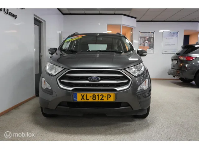 Ford EcoSport 1.0 EcoBoost Trend Ultimate navigatie. Kenteken: XL-812-P; Merk: Ford; Model: EcoSport; APK tot: 30-01-2027; Tellerstand: 74137 KM; Carrosserievorm: SUV; Aantal deuren: 5; Brandstofsoort: Benzine; Bouwjaar: 2019; Transmissie: Handgeschakeld; Kleur: grijs Metallic; Bekleding: Stof; Kleur interieur: zwart; Motorinhoud: 998 cc; Aantal cilinders: 3; Motorcode: M1JU; Vermogen: 92 kW / 125pk; Ledig gewicht: 1249 kg; Max. trekgewicht: 900 kg; Aantal zitplaatsen: 5; Verbruik: 5.3 l/100 km; BTW/Marge: Marge, de BTW is niet aftrekbaar; Lengte: 433 cm; Breedte: 177 cm; Aantal sleutels: 2; Onderhoudshistorie aanwezig: Dealer onderhouden; Motorrijtuigenbelasting: € 166 - 182 per kwartaal; Emissieklasse: Euro 6. Comfort. Boordcomputer; Cruise control. Exterieur. Buitenspiegels elektrisch inklapbaar; Buitenspiegels elektrisch verstelbaar; Buitenspiegels in carrosseriekleur; Buitenspiegels met verlichting; Buitenspiegels verwarmbaar; Centrale vergrendeling met afstandsbediening...