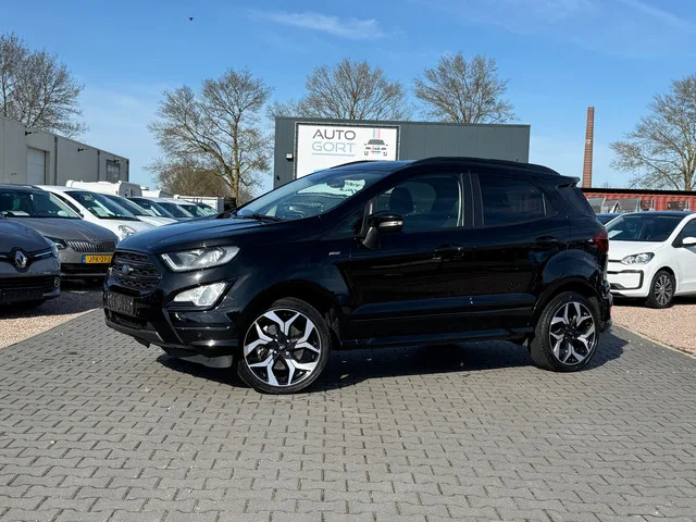 Nieuw binnen! Uitgebreide fotoreportage volgt! Zeer mooie en compleet uitgevoerde Ford EcoSport 1.0 ST-Line Black met slechts 75.000km! Meer informatie: Transmissie: 6 versnellingen, Handgeschakeld; Modeljaar: 2018; Voorwielaandrijving; Vermogen: 93 kW (126 PK); Koppel: 170 Nm; Aantal cilinders: 3; Motorinhoud: 998 cc; Ledig gewicht: 1.248 kg; Wielbasis: 252 cm; Tankinhoud: 52 liter; Acceleratie (0-100): 11,0 s; Topsnelheid: 180 km/u; Interieurkleur: zwart; 5 zitplaatsen; Gemiddeld brandstofverbruik: 5,3 l/100km (1 op 18,9); Energielabel: D; Onderhoudsboekjes aanwezig; APK gekeurd tot nov. 2027; 2 sleutels (2 handzenders); Motorrijtuigenbelasting: € 172 - € 188 per kwartaal; vanaf € 243 p/m (financial lease, 72 maanden); informeer naar de mogelijkheden en voorwaarden