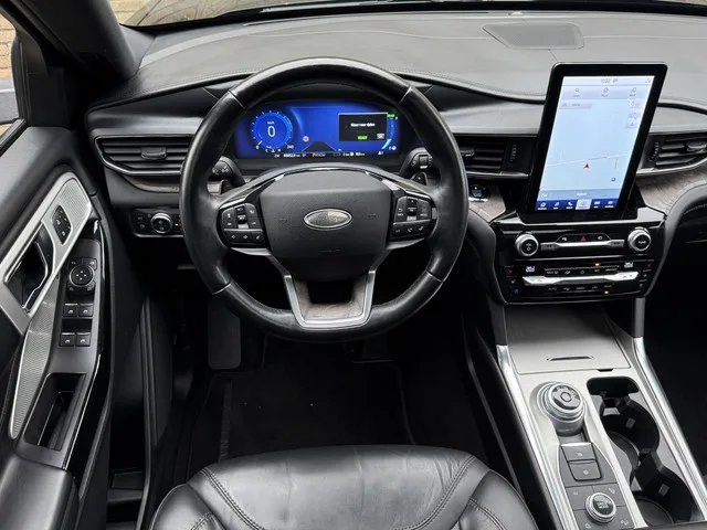 Deze Ford Explorer 3.0 V6 EcoBoost 457 pk Plug-in Hybrid Platinum uit 2021 is een indrukwekkende verschijning die kracht, luxe en ruimte op topniveau combineert. Met zijn krachtige V6 benzinemotor in combinatie met elektrische ondersteuning levert hij maar liefst 457 pk, waarmee prestaties en souplesse moeiteloos samengaan. Dankzij de plug-in hybride technologie profiteert u bovendien van fluisterstil elektrisch rijden voor korte ritten, terwijl u voor langere afstanden beschikt over het volle vermogen en comfort dat u van een echte SUV in dit segment mag verwachten. Deze Explorer is volledig onderhouden en heeft slechts 65.000 kilometer gereden. De Platinum-uitvoering onderscheidt zich duidelijk van de sportiever ogende ST-Line. Waar de ST-Line zich richt op een dynamische uitstraling met meer zwarte accenten en een sportieve styling, staat de Platinum voor ultieme luxe, verfijning en comfort. Denk aan hoogwaardige lederen bekleding met luxe afwerking, geavanceerde comfortfuncties...