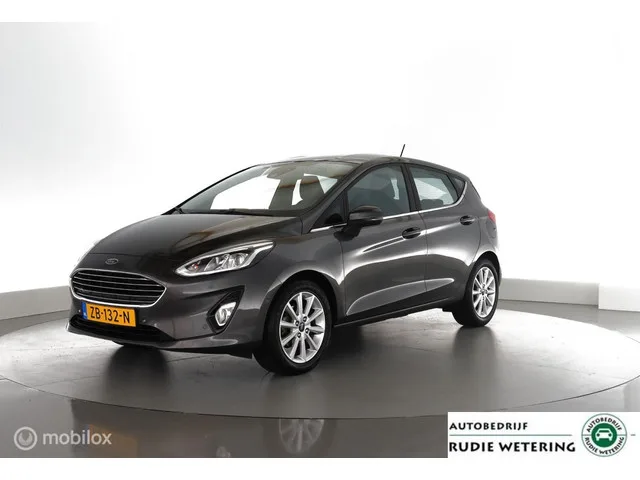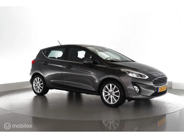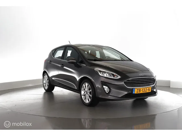 Ford Fiesta 1.0 EcoB. Titanium 100pk|nav|cam|dab|parkassist|lmv16. Kenteken: ZB-132-N; Merk: Ford; Model: Fiesta; APK tot: 24-04-2027; Tellerstand: 79010 KM; Carrosserievorm: Hatchback; Aantal deuren: 5; Brandstofsoort: Benzine; Bouwjaar: 2019; Transmissie: Handgeschakeld 6-versnellingen; Kleur: grijs Metallic; Kleurnaam: Magnetic; Bekleding: Stof; Interieurnaam: Domo/dynamo/ebony; Motorinhoud: 998 cc; Aantal cilinders: 3; Motorcode: SFJN; Vermogen: 73 kW / 99pk; Ledig gewicht: 1090 kg; Max. trekgewicht: 1000 kg; Aantal zitplaatsen: 5; Verbruik: 4.8 l/100 km; BTW/Marge: Marge, de BTW is niet aftrekbaar; Lengte: 407 cm; Breedte: 176 cm; Aantal sleutels: 2; Onderhoudshistorie aanwezig: Ja; Motorrijtuigenbelasting: € 140 - 154 per kwartaal; Emissieklasse: Euro 6. Pakket: Driver Assistance Pack 2. Achteruitrijcamera; Buitenspiegels elektrisch inklapbaar; Buitenspiegels met verlichting; Parkeer assistent; Parkeersensor achter; Parkeersensor voor. Pakket: Navigation Pack. Audio...