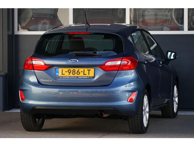 Ford Fiesta 1.0 EcoBoost Titanium, NL, clima, PDC, stoelverw. Kenteken: L-986-LT; Merk: Ford; Model: Fiesta; APK tot: 30-06-2027; Tellerstand: 73171 KM; Carrosserievorm: Hatchback; Aantal deuren: 5; Brandstofsoort: Benzine; Bouwjaar: 2021; Transmissie: Handgeschakeld; Kleur: blauw Metallic; Motorinhoud: 998 cc; Aantal cilinders: 3; Motorcode: M0JB; Vermogen: 70 kW / 95pk; Ledig gewicht: 1064 kg; Max. trekgewicht: 1000 kg; Aantal zitplaatsen: 5; Verbruik: 4.1 l/100 km; BTW/Marge: BTW aftrekbaar, de prijs is inclusief BTW; Lengte: 407 cm; Breedte: 176 cm; Aantal sleutels: 2; Onderhoudshistorie aanwezig: Dealer onderhouden; Motorrijtuigenbelasting: € 140 - 154 per kwartaal; Emissieklasse: Euro 6. Pakket: Winter pack. Stuur verwarmd; Verwarmde voorruit; Voorstoelen verwarmd. Comfort. Boordcomputer; Cruise control; Regensensor. Exterieur. Achterruitwisser; Buitenspiegels elektrisch verstelbaar; Buitenspiegels in carrosseriekleur; Buitenspiegels verwarmbaar; Centrale vergrendeling met...