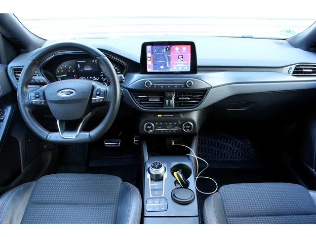 Bijzonder sportieve Ford Focus ST-Line Automaat met een zeer vlotte 150pk sterke 1.5 EcoBoost turbo benzine motor en een km stand van slechts 91.000 kilometer afkomstig van zijn eerste Eigenaar! Hele dikke ST uitvoering die beschikt onder andere over Apple Carplay / Android Auto, Adaptieve Cruise Control, Rijstrooksensor met Stuurhulp, Full-LED Kopampen, Leder/Stof Sportstoelen, Keyless go, Navigatie, Parkeersensoren voor en achter, Bluetooth, Multifunctioneel Stuur, Stoelverwarming, Stuurverwarming, Voorruitverwarming en nog veel meer! Kom langs voor een proefrit! Wegenbelasting €69,- per maand. 8 versn., Automaat; Modeljaar: 2018; 4WD; 110 kW; 240 Nm; 3 cilinders; 1.498cc; Gewicht: 1.304kg; Wielbasis: 270cm; 52l tank; 0-100 km/h: 8,9s; Topsnelheid: 208km/u; Interieurkleur: zwart; 5 zitplaatsen; 5,9 l/100km; Energielabel C; Onderhoudsboekjes aanwezig; 2 sleutels (2 handzenders); Wegenbelasting: € 199-€ 217p/kwrt; 4104