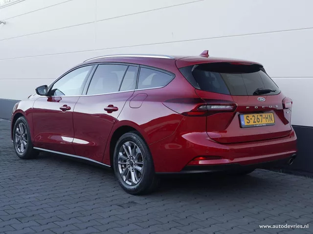 Ford Focus Wagon 1.0 EcoBoost 125pk Hybrid Titanium | Navigatie | Camera | Full LED | Nieuw model. Kenteken: S-267-HN; Merk: Ford; Model: Focus Wagon; APK tot: 30-01-2027; Tellerstand: 176125 KM; Carrosserievorm: Station; Aantal deuren: 5; Brandstofsoort: Benzine; Bouwjaar: 2023; Transmissie: Handgeschakeld 6-bak; Kleur: rood Metallic; Kleurnaam: Fantastic Red metallic; Bekleding: Stof; Kleur interieur: zwart; Motorinhoud: 999 cc; Aantal cilinders: 3; Motorcode: R0DB; Vermogen: 92 kW / 125pk; Ledig gewicht: 1341 kg; Max. trekgewicht: 1000 kg; Aantal zitplaatsen: 5; Verbruik: 5.2 l/100 km; BTW/Marge: BTW aftrekbaar, de prijs is inclusief BTW; Lengte: 469 cm; Breedte: 184 cm; Aantal sleutels: 2; Onderhoudshistorie aanwezig: Dealer onderhouden; Motorrijtuigenbelasting: € 144 - 158 per kwartaal; Emissieklasse: Euro 6. Pakket: Driver Assistance Pack. Achteruitrij assistent; Cruise control adaptief; Dodehoek detectie; Grootlichtassistent; Uitwijk assistent; Verkeersbord detectie...