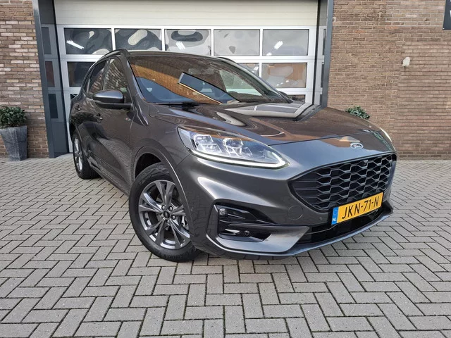 18 inch lichtmetalen velgen 5x2-spaaks in Rock Metallic, Premium Metaallak: Magnetic, Achterspoiler, Automatisch inschakelende dimlichten, chroom delen exterieur, Dakreling Zwart, Dubbele uitlaat achter - Sportief Design, Elektrisch verstelbare, verwarmbare en inklapbare buitenspiegels met instapverlichting, FordKeyless Entry op de voorportieren (incl. motion sensor in de sleutel), geluidsisolerend glas, Handsfree elektrisch bedienbare achterklep, koplampreiniging, LED achterlichten, LED dagrijverlichting, LED koplampen voor dimlicht en grootlicht, LED mistlampen voor - uniek design, Privacy Glass, Regensensor, Sportieve unieke ST-Line zijskirts, Weg/Uitklapbare Trekhaak (Elektrisch bedienbaar)