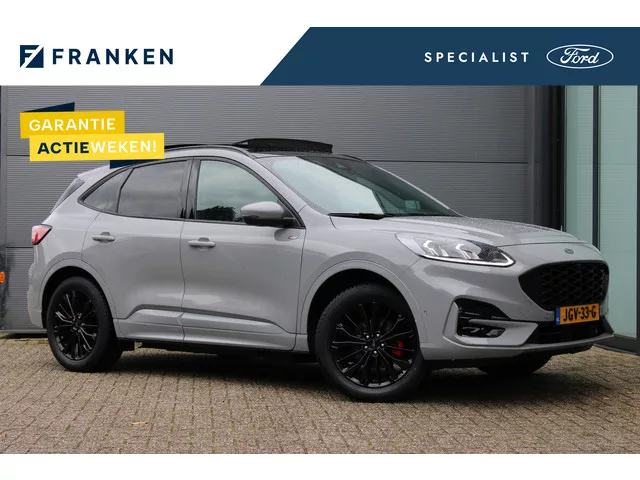 Betreft een Ford Kuga PHEV Graphite tech edition uit 2024. Deze is o.a. voorzien van de volgende opties. Driver Assistance Pack 1.250. – Adaptive Cruise Control. – Intelligent Speed Assist. – Lane Centring Assist en Stop&Go (2.5 PHEV). – Traffic Sign Recognition. – Wrong Way Alert. – Driver alert. – Active Park Assist 2: Volledig automatisch inparkeren (2.5. PHEV). – 180 graden Wide-view camera vóór. – Door Edge Protectors. – Blind Spot Information System inclusief Cross Traffic Alert en. Lane Change Warning. Winter Pack 700. – Quickclear elektrisch verwarmbare voorruit. – Elektrisch verwarmbare voorstoelen en achterbank. – Elektrisch verwarmbaar stuurwiel. Technology Pack 600. – Adaptive front lighting system met dynamische LED. koplampen. – Grootlichtassistent met antiverblinding. – Automatische niveauregeling koplampen. – Head-up Display. Handsfree elektrisch bedienbare achterklep 450. Panoramadak. Privacy glass 250. Elektrisch wegklapbare trekhaak. en meer! 1 versn., Automaat;...