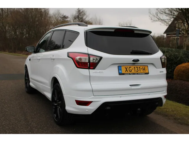 Origineel Nederlandse auto, volledige onderhoudshistorie aanwezig. ST-Line! ONZE prijs is RIJKLAAR INCLUSIEF 12 maanden Bovag Garantie, nieuwe APK, afleverbeurt, de Nationale Autopas, poetsen, volle tank en kentekenleges. GEEN meerprijs voor rijklaar maken. Geen meerprijs voor garantie. Zeer luxe en sterke Kuga, mag 2.000 kg trekken!. Inruil, verzekering en financiering mogelijk. Vast telefoonnummer 055 - 5051295. Mobiel WhatsApp nummer 055 - 5051295. XG-131-H. Meer informatie: Transmissie: 6 versnellingen, Handgeschakeld; Vermogen: 110 kW (150 PK); Aantal cilinders: 4; Motorinhoud: 1.498 cc; Ledig gewicht: 1.530 kg; Max. trekgewicht: 2.000 kg; 5 zitplaatsen; Gemiddeld brandstofverbruik: 7,2 l/100km (1 op 13,9); Brandstofverbruik in de stad: 8,9 l/100km (1 op 11,2); Brandstofverbruik op de snelweg: 6,3 l/100km (1 op 15,9); CO₂-uitstoot: 160 g/km; Garantielabel: BOVAG Garantie (12 maanden); Motorrijtuigenbelasting: € 253 - € 276 per kwartaal; Referentienummer: XG-131-H
