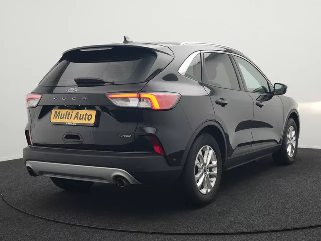 Ford Kuga 2.5 Titanium Plug In Hybrid 225pk Dealer O.H. PHEV | Trekhaak Af Fabriek | Adaptive Cruise | Blis | Sportstoelen Vewarmd | Pilot Assist | Apple Carplay | Camera | Lane Assist | Navigatie | Virtual | DAB |. Herkenbaar design gaat bij Ford samen met maximaal rijplezier. Als u van autorijden houdt, dan zit u met deze Kuga beslist goed. Goed voor het milieu, goed voor de portemonnee: hybride rijden biedt het beste van beide! Dankzij de stoelverwarming, verwarmbare achterbank en het verwarmbare stuur in deze auto, krijgt het begrip rijcomfort een nieuwe betekenis. Zijwaartse g-krachten worden solide opgevangen door de sportstoelen. De bagageruimte is toegankelijk via een comfortverhogende elektrische achterklep. Verder is de Ford uitgerust met: 17 inch lichtmetalen velgen, LED koplampen, donker getint glas achter, in delen neerklapbare achterbank, LED-achterlichten en verstelbare lendensteunen. Het digitale dashboard in deze auto maakt personalisatie van uw cockpitinterface...