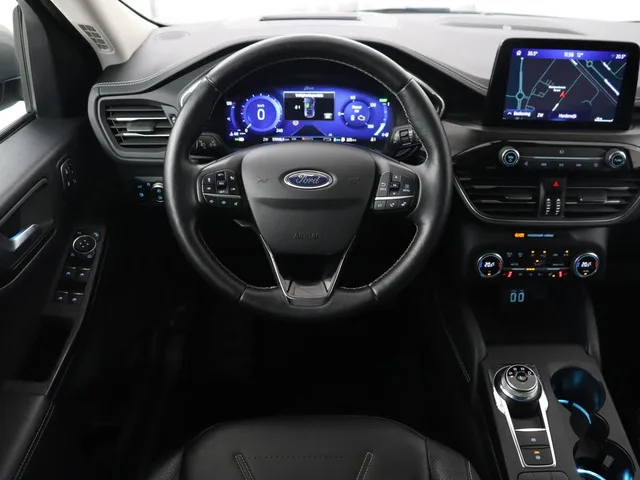 Automatische airco met 3 zones en bediening voor achterpassagiers, Elektrisch verwarmbare voorstoelen, lederen bekleding, Achterbank in 2 delen (60/40) neerklapbaar en verschuifbaar in lengte richting, Automatisch dimmende binnenspiegel, Elektrisch bedienbare portierramen rondom, FordPower startbutton, In hoogte verstelbare bestuurdersstoel inclusief lendensteunverstelling, In hoogte verstelbare passagiersstoel, lederen stuurwiel, Middenarmsteun achter met bekerhouders, Middenconsole met armsteun en 2 USB aansluitpunten op achterzijde, Sportstoelen voor, stuurbekrachtiging snelheidsafhankelijk, stuur verstelbaar, stuurwiel multifunctioneel