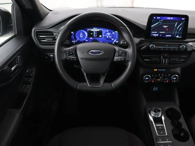 Automatische airco met 3 zones en bediening voor achterpassagiers, Achterbank in 2 delen (60/40) neerklapbaar en verschuifbaar in lengte richting, Automatisch dimmende binnenspiegel, Elektrisch bedienbare portierramen rondom, FordPower startbutton, hemelbekleding donker, In hoogte verstelbare bestuurdersstoel inclusief lendensteunverstelling, In hoogte verstelbare passagiersstoel, lederen stuurwiel, Lederen stuurwiel in ST-Line design met afgeplatte onderkant, Middenconsole met armsteun en 2 USB aansluitpunten op achterzijde, Parkeersensoren voor en achter met achteruitrijcamera, Sportstoelen voor, stuurbekrachtiging snelheidsafhankelijk, stuur verstelbaar, stuurwiel multifunctioneel