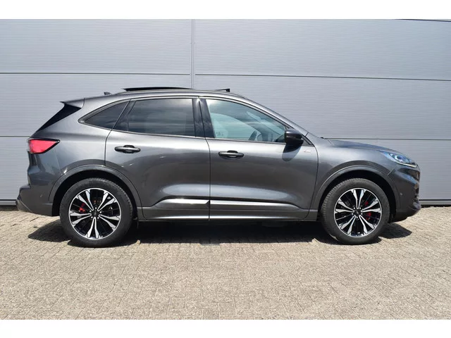 19 inch lichtmetalen velgen - 15-spaaks - hoogglans Ebony Black, Panoramadak, elektrisch te openen (incl. opbergvak zonnebril in plafondconsole), Premium Metaallak: Magnetic, Achterbumper inclusief diffuser, Achterspoiler, Automatisch inschakelende dimlichten, Chrome afwerking bovenzijde portierramen, Dakreling Zwart, Dubbele uitlaat achter - Sportief Design, Elektrisch verstelbare, verwarmbare en inklapbare buitenspiegels met instapverlichting, FordKeyless Entry op de voorportieren (incl. motion sensor in de sleutel), Geluidswerende zijramen voor, Handsfree elektrisch bedienbare achterklep, koplampreiniging, LED achterlichten, LED dagrijverlichting, LED koplampen voor dimlicht en grootlicht, LED mistlampen voor - uniek design, Privacy glass, Regensensor, Sportieve unieke ST-Line zijskirts