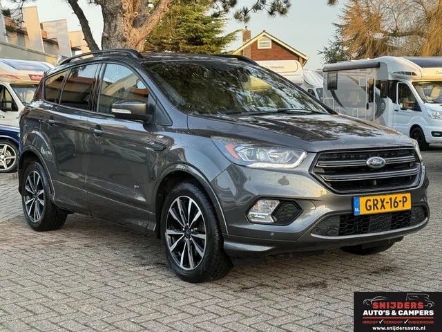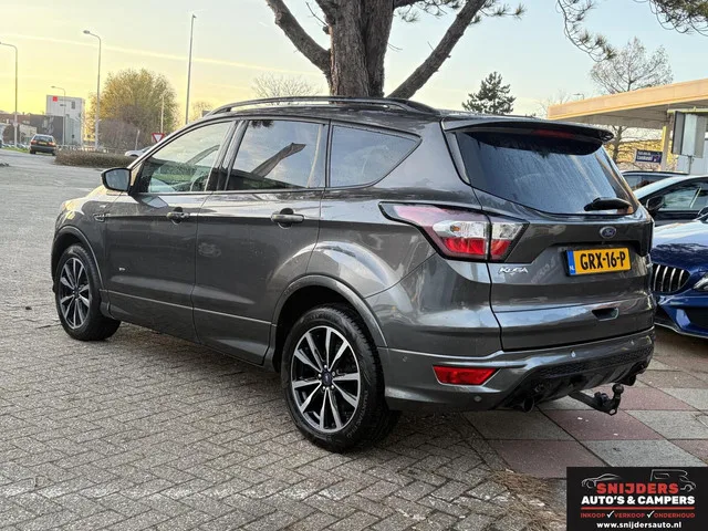 Super nette en luxe uitvoering. Ford Kuga 1.5 ST-Line Styling Pack 4WD. Kenteken: GRX-16-P; Merk: Ford; Model: Kuga; APK tot: 08-01-2027; Tellerstand: 99608 KM; Carrosserievorm: SUV; Aantal deuren: 5; Brandstofsoort: Benzine; Bouwjaar: 2016; Transmissie: Automaat; Kleur: grijs Metallic; Bekleding: Leder/Stof; Kleur interieur: zwart; Motorinhoud: 1498 cc; Aantal cilinders: 4; Motorcode: M9MA; Vermogen: 134 kW / 183pk; Ledig gewicht: 1586 kg; Max. trekgewicht: 1850 kg; Aantal zitplaatsen: 5; Verbruik: 7.4 l/100 km; BTW/Marge: Marge, de BTW is niet aftrekbaar; Motorrijtuigenbelasting: € 269 - 297 per kwartaal; Emissieklasse: Euro 6. Pakket: Winter pakket. Ruitensproeiers/wisserbladen verwarmbaar; Verwarmde voorruit; Voorstoelen verwarmd. Comfort. Boordcomputer; Cruise control; Regensensor. Exterieur. Achterruitwisser; Achterspoiler; Buitenspiegels elektrisch inklapbaar; Buitenspiegels elektrisch verstel- en verwarmbaar; Centrale vergrendeling met afstandsbediening; Dimlichten...