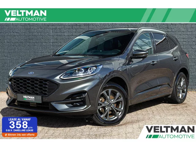 Ford Kuga 2.5 PHEV ST-Line X PANO TREKHAAK LED STOELVERWARMING CAMERA. Merk: Ford; Model: Kuga; Tellerstand: 75100 KM; Carrosserievorm: SUV; Aantal deuren: 5; Brandstofsoort: Hybride (Elektrisch/Benzine); Bouwjaar: 2022; Transmissie: Automaat; Kleur: grijs; Motorinhoud: 2488 cc; Aantal cilinders: 4; Vermogen: 165 kW / 225pk; Ledig gewicht: 1744 kg; Aantal zitplaatsen: 5; Verbruik: 1 l/100 km; BTW/Marge: BTW aftrekbaar, de prijs is inclusief BTW. Pakket: Black Pack. Andere dakkleur; Buitenspiegels in andere kleur. Comfort. Boordcomputer; Cruise control; Regensensor. Exterieur. Achterspoiler; Buitenspiegels elektr. met geheugen; Buitenspiegels elektrisch inklapbaar; Buitenspiegels elektrisch verstel- en verwarmbaar; Buitenspiegels met verlichting; Chroom delen exterieur; Dakrails; Dimlichten automatisch; Extra getint glas achter; Keyless entry; Koplampen adaptief; Koplampreiniging; LED achterlichten; LED dagrijverlichting; LED koplampen; Lichtmetalen velgen 18"; Metaalkleur...