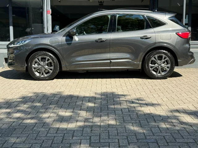 ***RIJKLAAR INC. GARANTIE***. Ford Kuga 2.5 PHEV ST-Line Aut*Pano*Navi*Leder*Led*Car-Play. Ford Kuga 2.5 PHEV ST-Line Aut*Pano*Navi*Leder*Led*Car-Play. Merk: Ford; Model: Kuga; Tellerstand: 52689 KM; Carrosserievorm: SUV; Aantal deuren: 5; Brandstofsoort: Hybride (Elektrisch/Benzine); Bouwjaar: 2021; Transmissie: Automaat; Kleur: grijs; Bekleding: Leder; Kleur interieur: zwart; Motorinhoud: 2488 cc; Aantal cilinders: 4; Vermogen: 112 kW / 153pk; Ledig gewicht: 1744 kg; Aantal zitplaatsen: 5; Verbruik: 1 l/100 km; BTW/Marge: Marge, de BTW is niet aftrekbaar; Aantal sleutels: 2; Onderhoudshistorie aanwezig: Dealer onderhouden. Comfort. Boordcomputer; Cruise control; Regensensor. Exterieur. Achterruitwisser; Achterspoiler; Buitenspiegels elektr. met geheugen; Buitenspiegels elektrisch inklapbaar; Buitenspiegels elektrisch verstel- en verwarmbaar; Buitenspiegels met verlichting; Centrale vergrendeling; Chroom delen exterieur; Dakrails; Dakspoiler; Dimlichten automatisch; Getint glas...