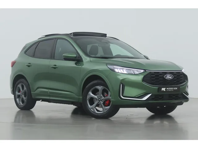 18 inch lichtmetalen velgen - 5-spaaks - Rock Metallic, Bursting Green, Panoramadak, elektrisch te openen (incl. opbergvak zonnebril in plafondconsole), Achterbumper inclusief diffuser, Achterspoiler, Adaptieve full LED koplampen, Automatisch inschakelende dimlichten, buitenspiegels elektr. met geheugen, Dakreling Zwart, Dubbele uitlaat achter - Sportief Design, Elektrisch verstelbare, verwarmbare en inklapbare buitenspiegels met instapverlichting, FordKeyless Entry op de voorportieren (incl. motion sensor in de sleutel), Geluidswerende zijramen voor, glans exterieur delen, Handsfree bedienbare achterklep, LED achterlichten, LED dagrijverlichting, onderscheidend achterspoiler, Privacy glass, Regensensor, Sportieve unieke ST-Line zijskirts