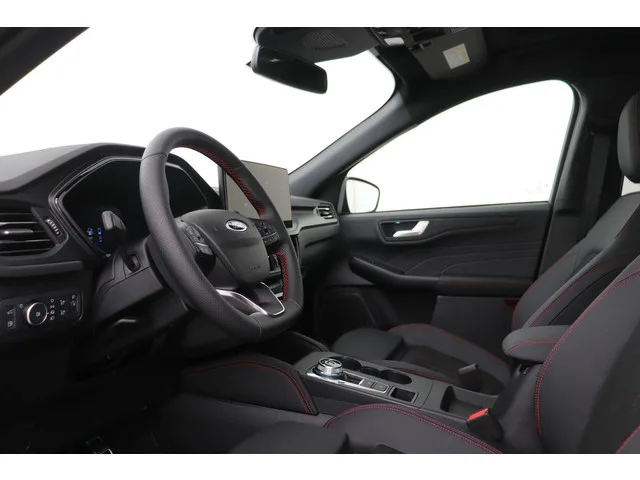 Bekleding ST-Line X en Graphite Tech: deels stof Rapton en deels Premium feel Sensico in Ebony, Dual Zone Automatische Airconditioning, Achterbank in 2 delen (60/40) neerklapbaar en verschuifbaar in lengte richting, achteruitrijcamera, Automatisch dimmende binnenspiegel, carbonafwerking interieur, Elektrisch bedienbare portierramen rondom, elektrisch verstelbare stoel(en) met geheugen, ergonomische voorstoelen, FordPower startbutton, In hoogte verstelbare bestuurdersstoel inclusief lendensteunverstelling, In hoogte verstelbare passagiersstoel, Middenconsole met armsteun en 2 USB aansluitpunten op achterzijde, passagiersstoel in hoogte verstelbaar, Sportstoelen voor, sportstuur, stuurbekrachtiging snelheidsafhankelijk, stuur kunstleder, stuur verstelbaar, stuurwiel multifunctioneel, Vanuit bagageruimte neerklapbare achterbank incl. middenarmsteun achter met bekerhouders, Zwarte hemelbekleding