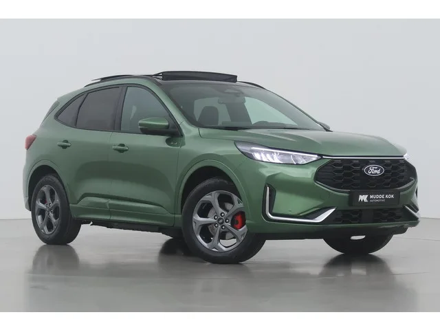 18 inch lichtmetalen velgen - 5-spaaks - Rock Metallic, Bursting Green, Panoramadak, elektrisch te openen (incl. opbergvak zonnebril in plafondconsole), Achterbumper inclusief diffuser, Achterspoiler, Adaptieve full LED koplampen, Automatisch inschakelende dimlichten, buitenspiegels elektr. met geheugen, Dakreling Zwart, Dubbele uitlaat achter - Sportief Design, Elektrisch verstelbare, verwarmbare en inklapbare buitenspiegels met instapverlichting, FordKeyless Entry op de voorportieren (incl. motion sensor in de sleutel), Geluidswerende zijramen voor, glans exterieur delen, Handsfree bedienbare achterklep, koplampreiniging, LED achterlichten, LED dagrijverlichting, onderscheidend achterspoiler, Privacy glass, Regensensor, Sportieve unieke ST-Line zijskirts
