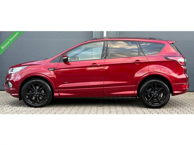 Ford Kuga 1.5 EcoBoost ST Line Pano.dak/LED/Camera/Lane/Carplay. Kenteken: P-976-DV; Merk: Ford; Model: Kuga; APK tot: 18-12-2025; Tellerstand: 79356 KM; Carrosserievorm: SUV; Aantal deuren: 5; Brandstofsoort: Benzine; Bouwjaar: 2017; Transmissie: Automaat; Kleur: rood; Motorinhoud: 1498 cc; Aantal cilinders: 4; Motorcode: M9MD; Vermogen: 134 kW / 183pk; Ledig gewicht: 1586 kg; Max. trekgewicht: 1850 kg; Aantal zitplaatsen: 5; Verbruik: 7.5 l/100 km; BTW/Marge: Marge, de BTW is niet aftrekbaar; Onderhoudshistorie aanwezig: Ja; Motorrijtuigenbelasting: € 269 - 297 per kwartaal; Emissieklasse: Euro 6. Pakket: Driver Assistance Pack. Achteruitrij assistent; Autonomous Emergency Braking; Dodehoek detectie; Grootlichtassistent; Rijstrooksensor met correctie; Ruitensproeiers/wisserbladen verwarmbaar; Verkeersbord detectie; Vermoeidheids herkenning; Verwarmde voorruit. Pakket: Optie pakket. Elektrisch bedienbare achterklep met sensorsturing; Keyless entry. Comfort. Boordcomputer; Cruise...