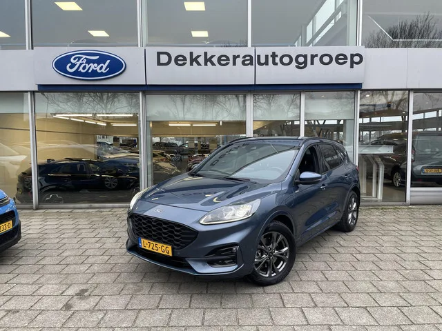 18 inch lichtmetalen velgen 5x2-spaaks in Rock Metallic, Chrome Blue, LED koplampen voor dimlicht en grootlicht, Achterspoiler, Automatisch inschakelende dimlichten, chroom delen exterieur, Dakreling Silver, Dubbele uitlaat achter - Sportief Design, Elektrisch verstelbare, verwarmbare en inklapbare buitenspiegels met instapverlichting, FordKeyless Entry op de voorportieren (incl. motion sensor in de sleutel), geluidsisolerend glas, Handsfree elektrisch bedienbare achterklep, koplampreiniging, LED achterlichten, LED dagrijverlichting, LED mistlampen voor - uniek design, Privacy glass, Regensensor, Sportieve unieke ST-Line zijskirts, Weg/Uitklapbare Trekhaak (Elektrisch bedienbaar