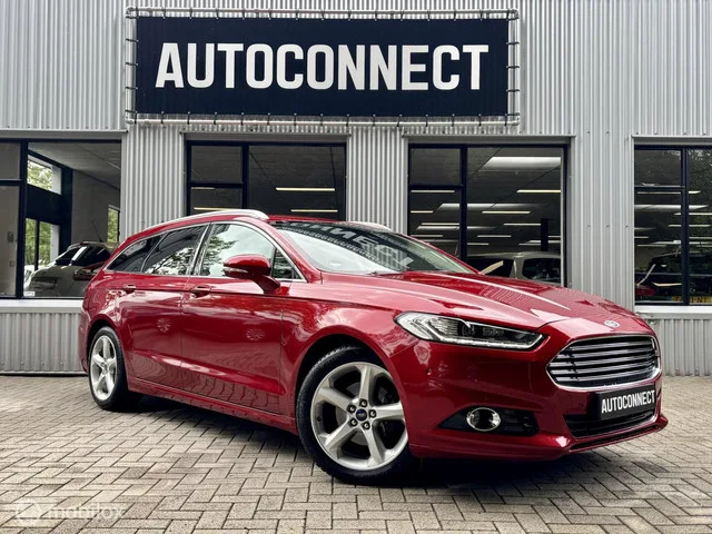 Ford Mondeo Wagon 2.0 Titanium. 240 PK, NAVI, CRUISE, CAMERA, STOELVERWARMING. Merk: Ford; Model: Mondeo Wagon; Tellerstand: 139972 KM; Carrosserievorm: Station; Aantal deuren: 5; Brandstofsoort: Benzine; Bouwjaar: 2015; Transmissie: Automaat; Kleur: rood Metallic; Bekleding: Leder/Alcantara; Motorinhoud: 1999 cc; Aantal cilinders: 4; Vermogen: 176 kW / 240pk; Ledig gewicht: 1484 kg; Aantal zitplaatsen: 5; Verbruik: 7.5 l/100 km; BTW/Marge: Marge, de BTW is niet aftrekbaar; Aantal sleutels: 2; Onderhoudshistorie aanwezig: Dealer onderhouden. Pakket: Audio pakket. Bluetooth; DAB; Parkeersensor voor en achter. Pakket: Business Pack. Bluetooth; DAB; Navigatiesysteem; Parkeer assistent. Pakket: Comfort Seat Pack. Elektrisch verstelb. bestuurdersstoel met geheugen; Elektrisch verstelbare passagiersstoel; Elektrisch verstelbare stoel(en) met geheugen; Kunstlederen/microvezel bekleding; Voorstoelen verwarmd. Pakket: Connectivity pakket. Achteruitrijcamera; Audio installatie premium...