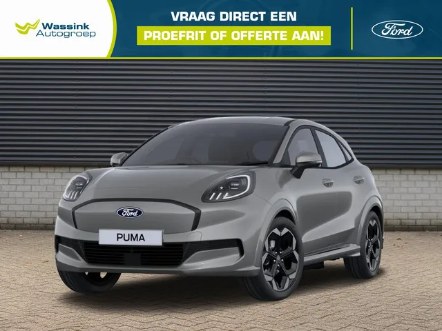 Efficiënt en ruim. De nieuwe volledig elektrische Puma Gen-E. Compact maar uitzonderlijk praktisch met een bagageruimte van 617 liter en de zuinigste in zijn klasse. Onmiskenbaar Puma. De elektrische Puma Gen-E zet de succesvolle designtaal voort zoals bekend van Europa’s bestverkochte Ford. Het typerende front en kenmerkende lichtsignatuur zijn prominent aanwezig. Alles kan mee. Alles. Met een bagageruimte tot wel 617 liter (inclusief frunk van 43 liter) neem jij niet alleen je weekendtas mee, maar ook nog 2 kinderwagens, 2 koffers én een koelbox. Snel en draadloos. Apple CarPlay en Android auto, draadloos en altijd standaard. Jouw Puma Gen-E biedt draadloze connectiviteit en een 5G-modem zodat jij altijd verbonden bent en beschikt over de nieuwste software. Nieuw; Constructie: 2026-01; Modeljaar: 2025; 123 kW; Gewicht: 1.463kg; Max. trekgewicht: 750kg; Wielbasis: 2.588cm; Topsnelheid: 160km/u; Interieur: Antraciet, Stof; 5 zitplaatsen; Wegenbelasting: € 177-€ 193p/kwrt; #74751