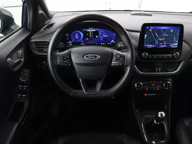 Ford, Go Further. Vooruitgang op wielen. In alle opzichten. De aandrijving komt voor rekening van een benzinemotor en een handgeschakelde zesversnellingsbak. Een koude start op frisse dagen? Niet met de behaaglijke stoelverwarming. Fijn plusje, zeker in de kille dagen, is het verwarmd stuurwiel. Ook 18 inch lichtmetalen velgen, LED koplampen, sportonderstel, halflederen bekleding, donker getint glas achter en in delen neerklapbare achterbank zijn aan boord. Het slim uitgedachte digitale dashboard toont alle essentiële ritinformatie in één oogopslag. Overzichtelijk en veilig parkeren met de achteruitrijcamera. Overal en altijd. Met adaptive cruise control houdt deze auto automatisch afstand tot uw voorligger. Bedient u de auto liever met uw stem? Dan is het goed om te weten dat spraakbediening aanwezig is. Communiceren met uw auto? Dat gaat via remote services. Met uw smartphone maakt u waar dan ook contact om allerlei functies te checken of te activeren. Ook premium audiosysteem,...