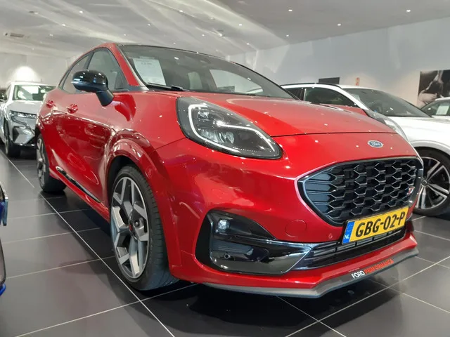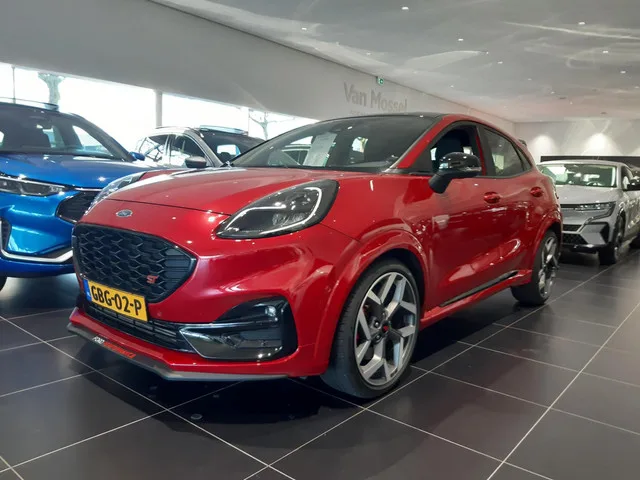 Een hele gave Ford Puma ST! Meerdere en betere foto's volgen! Welkom bij Van Mossel Ford Roosendaal! De officiële Ford dealer voor de aanschaf van uw nieuwe Ford personen- of bedrijfsauto, occasion, Ford onderdelen en onderhoud aan uw Ford. 6 versn., Handgeschakeld; Modeljaar: 2020; 4WD; 147 kW; 320 Nm; 3 cilinders; 1.496cc; Gewicht: 1.263kg; Laadvermogen: 547kg; GVW: 1.810kg; Max. trekgewicht: 750kg; LxB: 423x181cm; Wielbasis: 259cm; 45l tank; 0-100 km/h: 6,7s; Topsnelheid: 220km/u; 5 zitplaatsen; 6,8 l/100km; 155 g/km CO₂; Energielabel A; Euro 6d-TEMP; APK: tot aug. 2026; Optische staat: goed; A1 Occasions, BOVAG Garantie (12 maanden); BOVAG 40-Puntencheck; Wegenbelasting: € 199-€ 217p/kwrt; Optioneel afleverpakket: Servicepakket Plus (€ 995); GBG-02-P