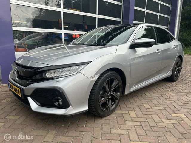 Honda Civic 1.0 i-VTEC Executive * NAVI * AIRCO * PANODAK *. Kenteken: HSF-08-R; Merk: Honda; Model: Civic; APK tot: 17-06-2026; Tellerstand: 91677 KM; Carrosserievorm: Hatchback; Aantal deuren: 5; Brandstofsoort: Benzine; Bouwjaar: 2017; Transmissie: Automaat; Kleur: grijs Metallic; Bekleding: Stof; Kleur interieur: zwart; Motorinhoud: 988 cc; Aantal cilinders: 3; Motorcode: P10A2; Vermogen: 95 kW / 129pk; Ledig gewicht: 1291 kg; Max. trekgewicht: 800 kg; Aantal zitplaatsen: 5; Verbruik: 5 l/100 km; BTW/Marge: Marge, de BTW is niet aftrekbaar; Lengte: 452 cm; Hoogte: 1428 cm; Aantal sleutels: 2; Onderhoudshistorie aanwezig: Dealer onderhouden; Motorrijtuigenbelasting: € 199 - 217 per kwartaal; Emissieklasse: Euro 6. Comfort. Boordcomputer; Cruise control; Regensensor. Exterieur. Achterruitwisser en sproeier; Adaptief demping systeem; Buitenspiegels elektrisch inklapbaar; Buitenspiegels elektrisch verstel- en verwarmbaar; Centrale vergrendeling met afstandsbediening; Chroom delen...
