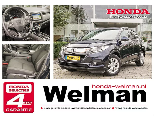 Fantastische mooi!! Deze prachtige en zeer rijk uitgevoerde Honda HR-V Elegance met 7 -traps Automaat, Origineel Honda Trekhaak en Dakrailing!!!! Deze prachtige HR-V Elegance, hebben wij nieuw geleverd, komt rechtstreeks van 1e eigenaar en is 100% Honda dealer onderhouden aan onze werkplaats. Inclusief Honda Connect met Garmin Navigatie, Achteruitrijcamera, Parkeersensoren voor en achter, Rijstrookassistentie, Bluetooth Carkit, Dual-Zone Climate control, Achteruitrijcamera met parkeerhulp, Privacy Glass af B-Style, Frontaal bots waarschuwing systeem, Verkeersborden herkenning, Stoelverwarming voor, Cruise Control met intelligente snelheidsbegrenzer, Alarmsysteem, Automatische ruitenwissers, Automatische verlichting met High Beam Support. Deze mooie HR-V ziet er zowel van binnen als van buiten zeer goed verzorgd uit, de vorige eigenaar is zeer netjes mee omgegaan en dat is direct te zien ook!! Bent u de nieuwe eigenaar van deze prachtige hoogzittende HR-V Elegance met 7 -traps...