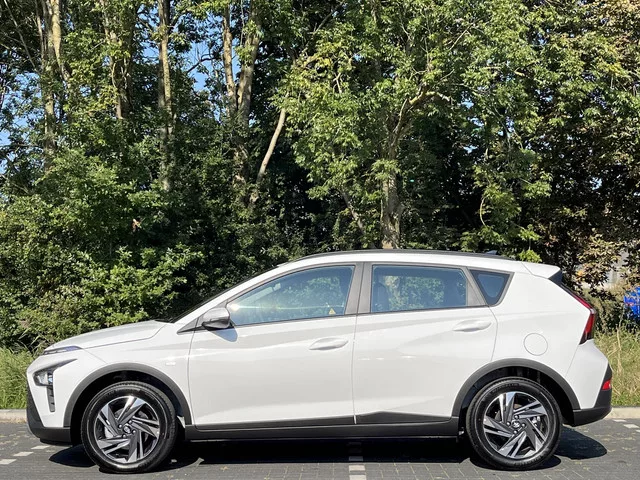 Profiteer nu extra en ontvang €4700 korting op uw aankoop! Voor de beste deals bent u op het juiste adres bij Hyundai dealer H-Point! De eendrachtige samenwerking van de benzinemotor en de elektromotor geeft deze Hyundai Bayon zijn geweldige rijkwaliteiten. We hebben het hier over een nieuwe auto, hij is nu direct leverbaar. Ook is de auto voorzien van: 16 inch lichtmetalen velgen, LED-dagrijverlichting, elektrisch inklapbare buitenspiegels, in delen neerklapbare achterbank, elektrisch bediende ramen en start-stopsysteem. Wat ook opvalt, is de strakke en overzichtelijke informatie die het digitale dashboard levert. Een vergeten muurtje, een verborgen paaltje? Dat gebeurt niet meer, dankzij de achteruitrijcamera. Vergeten af te sluiten? Bandenspanning onvoldoende? De speciale app geeft u direct een seintje met behulp van Connected Services. Naast de routeinformatie van het full map navigatiesysteem kunt u muziek via het audiosysteem ook online beluisteren via bluetooth. Onderweg...