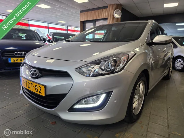 Hyundai i30 Wagon 1.6 GDI Clima Cruise Navi Camera Dealer onderhouden. Kenteken: 1-TDT-82; Merk: Hyundai; Model: i30 Wagon; APK tot: 28-03-2026; Tellerstand: 109557 KM; Carrosserievorm: Station; Aantal deuren: 5; Brandstofsoort: Benzine; Bouwjaar: 2014; Transmissie: Handgeschakeld; Kleur: grijs; Motorinhoud: 1591 cc; Aantal cilinders: 4; Motorcode: G4FD; Vermogen: 99 kW / 135pk; Ledig gewicht: 1198 kg; Max. trekgewicht: 1400 kg; Aantal zitplaatsen: 5; Verbruik: 5.8 l/100 km; BTW/Marge: Marge, de BTW is niet aftrekbaar; Lengte: 449 cm; Hoogte: 1495 cm; Motorrijtuigenbelasting: € 172 - 188 per kwartaal; Emissieklasse: Euro 5. Comfort. Cruise control; Regensensor. Exterieur. Alle onze auto's zijn voor de verkoop helemaal nagelopen en rijklaar gemaakt; Auto's worden afgeleverd geheel gereinigd zowel interieur als exterieur; Buitenspiegels elektrisch inklapbaar; Buitenspiegels elektrisch verstel- en verwarmbaar; Centrale vergrendeling met afstandsbediening; LED dagrijverlichting...