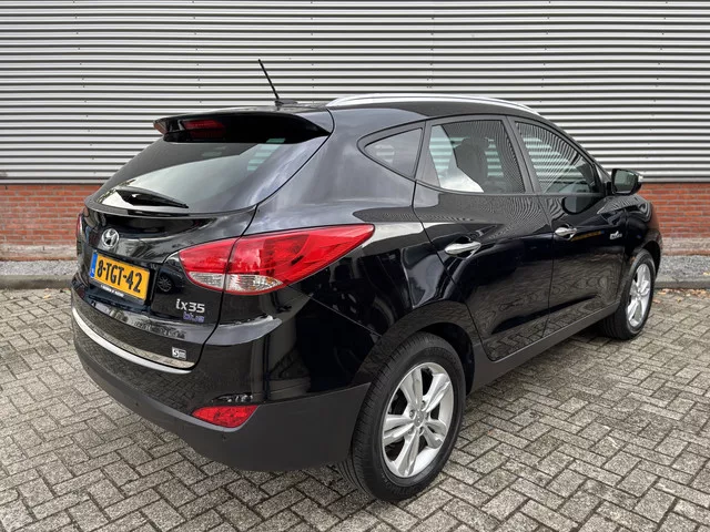 Deze Hyundai ix35 staat garant voor vele veilige en comfortabele kilometers. Een benzinemotor en een handgeschakelde zesversnellingsbak zorgen dat u met deze SUV prima vooruitkomt. Tijdens koude winterdagen verjaagt uw stoelverwarming de kou en maakt het rijden heerlijk comfortabel. Bij de rijke uitrusting horen ook 17 inch lichtmetalen velgen, halflederen bekleding, donker getint glas achter, in delen neerklapbare achterbank en verstelbare lendensteunen. Met de knoppen op het stuur regelt u het audiosysteem en het full map navigatiesysteem, terwijl u uw blik op de weg gericht houdt. Met de electronic climate control selecteert u de gewenste temperatuur. Het systeem doet de rest. Geen parkeervak is te klein dankzij de assistentie van de parkeersensoren. Het drukke verkeer eist onderweg al uw aandacht op. Daarom is het goed dat deze Hyundai is voorzien van diverse systemen die u assisteren tijdens de rit. Een automatisch inschakelbare verlichting neemt het waar als het donker wordt...
