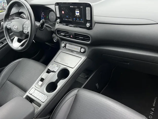 Hyundai Kona EV Premium 64 kWh 204PK Stoel/stuurverw, Carplay, camera, LED, el. stoelen, stoelventilatie, adapt cruise SOH96,5%. Hyundai Kona EV Premium 64 kWh 204PK LEER SOH96%+STOELSTUURV. Kenteken: ZS-938-T; Merk: Hyundai; Model: Kona; APK tot: 03-01-2028; Tellerstand: 176855 KM; Carrosserievorm: SUV; Aantal deuren: 5; Brandstofsoort: Elektrisch; Accucapaciteit: 64 kWh; Accuconditie: 97 %; Geschikt voor snelladen: Ja; Bouwjaar: 2019; Transmissie: Automaat; Kleur: grijs; Kleurnaam: Dark grey metallic; Bekleding: Leder; Kleur interieur: zwart; Interieurnaam: Black leather; Motorcode: EM16; Vermogen: 150 kW / 204pk; Ledig gewicht: 1660 kg; Aantal zitplaatsen: 5; BTW/Marge: Marge, de BTW is niet aftrekbaar; Lengte: 418 cm; Breedte: 180 cm; Hoogte: 1570 cm; Aantal sleutels: 2; Onderhoudshistorie aanwezig: Ja; Motorrijtuigenbelasting: € 214 - 234 per kwartaal; Emissieklasse: Euro Z. Comfort. Boordcomputer; Cruise control; Regensensor. Exterieur. Buitenspiegels elektrisch inklapbaar...