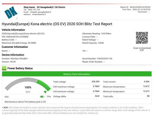 Op dit moment hebben wij meerdere Hyundai Kona's op voorraad, waardoor je niet voor niets gereden komt! Dat is dan ook mede de reden dat mensen door heel het land naar ons toe komen! Tot ziens bij DK-Electric. Voorwielaandrijving; Bandenmaat: 215/55 R17; 100 kW; Gewicht: 1.510kg; Laadvermogen: 510kg; GVW: 2.020kg; LxBxH: 418x180x157cm; Wielbasis: 260cm; Aanwezige accu: gekocht; Accu: 39kWh, 100%; Accu laden: Type 2, 1-fase, 11 kW, 90 km/u, 10 uur en 49 minuten; Accu snelladen: Combined Charging System, 256 km/u, 1 uur en 46 minuten; Actieradius: 305 km; 0-100 km/h: 9,9s; Topsnelheid: 155km/u; Interieur: zwart, Stof; 5 zitplaatsen; 12,786885245902 kWh/100km; Energielabel A; Dealer onderhouden (onderhoudsboekjes aanwezig); APK bij aflevering; Schadevrij; 2 sleutels (2 handzenders); Wegenbelasting: € 177-€ 193p/kwrt; vanaf € 179 p/m (informeer naar de mogelijkheden en voorwaarden); Optioneel afleverpakket: BOVAG 12 maanden pakket (optioneel) (€ 995); JXR-14-N