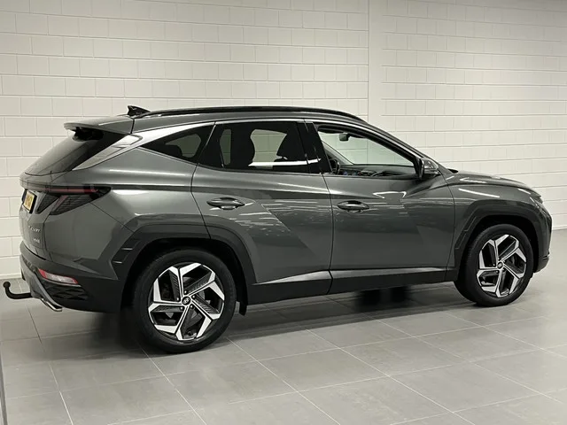Goede prestaties, aantrekkelijke extra's en perfect onderhouden: deze Hyundai Tucson stelt zich graag aan je voor! De krachtige motor geeft deze Hyundai uitstekende prestaties. Boven uw hoofd schuiven de wolken zichtbaar voorbij door het elektrisch bediende glazen panorama dak. En kijk eens aan de achterzijde wat gemakkelijk: een eveneens elektrisch bedienbare achterklep! Ervaar de weldadige warmte van de inschakelbare stoelverwarming. Met de verwarmbare achterbank zitten jouw achterpassagiers er net zo behaaglijk bij als jij. In deze auto profiteer jij onder andere ook van: 19 inch lichtmetalen velgen, LED koplampen, donker getint glas achter, in delen neerklapbare achterbank, LED-achterlichten en verstelbare lendensteunen. Rij- en route-info wordt perfect in beeld gebracht door het digitale dashboard. Elk van de vier camera's op deze auto draagt bij aan het creëren van een onbelemmerd uitzicht van 360 graden rondom de auto. Adaptive cruise control houdt de ingestelde snelheid vast...