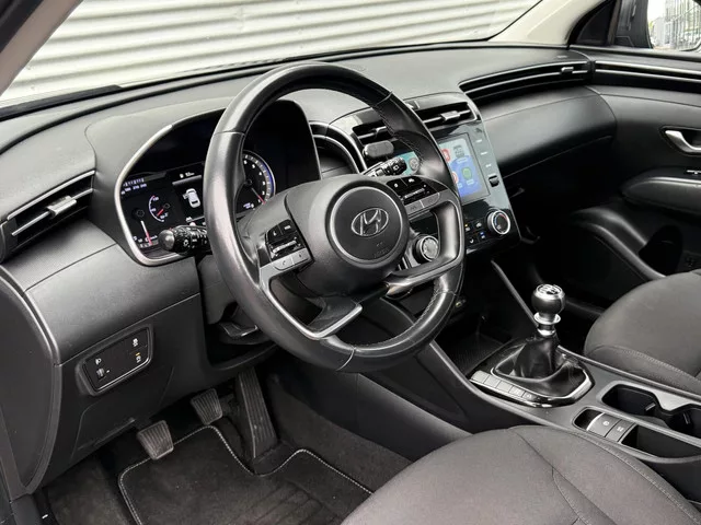 Hyundai Tucson 1.6 T-GDI NW Model Camera Carplay Led Cruise 2021 Eerste Eigenaar Hoge Instap. Kenteken: JHD-40-N; Merk: Hyundai; Model: Tucson; APK tot: 15-10-2027; Tellerstand: 106388 KM; Carrosserievorm: SUV; Aantal deuren: 5; Brandstofsoort: Benzine; Bouwjaar: 2021; Transmissie: Handgeschakeld; Kleur: zwart Metallic; Bekleding: Stof; Kleur interieur: antraciet; Motorinhoud: 1598 cc; Aantal cilinders: 4; Motorcode: G4FP; Vermogen: 110 kW / 150pk; Ledig gewicht: 1400 kg; Max. massa voertuig: 2050 kg; Max. trekgewicht: 1650 kg; Aantal zitplaatsen: 5; Verbruik: 6.1 l/100 km; BTW/Marge: Marge, de BTW is niet aftrekbaar; Lengte: 450 cm; Breedte: 187 cm; Hoogte: 1650 cm; Aantal sleutels: 2; Onderhoudshistorie aanwezig: Ja; Motorrijtuigenbelasting: € 217 - 240 per kwartaal; Emissieklasse: Euro 6; Velgmaat: 17 inch; Wielbasis: 268 mm. Comfort. Boordcomputer; Cruise control. Exterieur. Achterruitwisser; Buitenspiegel rechts; Buitenspiegels elektrisch inklapbaar; Buitenspiegels elektrisch...