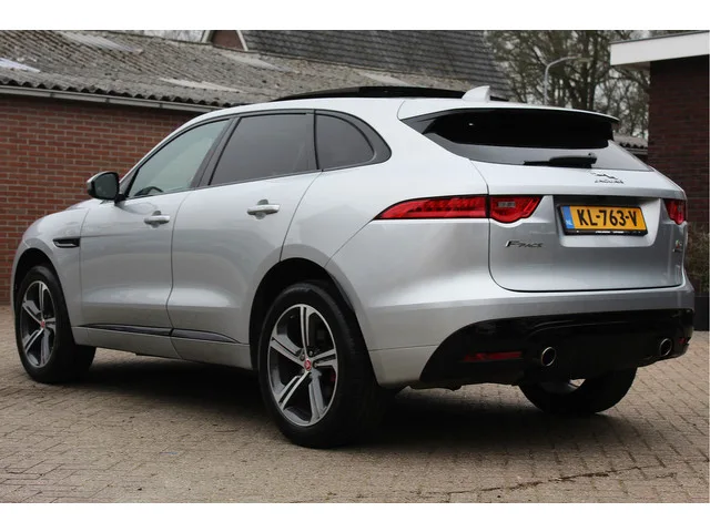 Land Rover - Range Rover - Jaguar Specialist J van Dreven biedt aan : Een Zeer mooie Jaguar F-PACE S V6! Origineel Nederlands geleverde auto ! 1e eigenaar ! Carbon motor kap ! Stuurwiel verwarming, Panorama dak, Elektrisch verstelbare stoelen, Digitaal instrumenten paneel ! Climate, Cruise, PDC, ,Etc, Etc! Inclusief winter en zomer bandenset! 8 versn., Automaat; Modeljaar: 2015; 280 kW; 450 Nm; 6 cilinders; 2.995cc; Gewicht: 1.885kg; Laadvermogen: 615kg; GVW: 2.500kg; Max. trekgewicht: 2.400kg; LxBxH: 485x194x167cm; Wielbasis: 287cm; 63l tank; 0-100 km/h: 5,3s; Topsnelheid: 250km/u; 5 zitplaatsen; 8,9 l/100km; 12,2 l/100km; 7,1 l/100km; 209 g/km CO₂; Energielabel F; Euro 6; 2 sleutels (2 handzenders); Wegenbelasting: € 360-€ 394p/kwrt; vanaf € 572 p/m (informeer naar de mogelijkheden en voorwaarden); KL-763-V