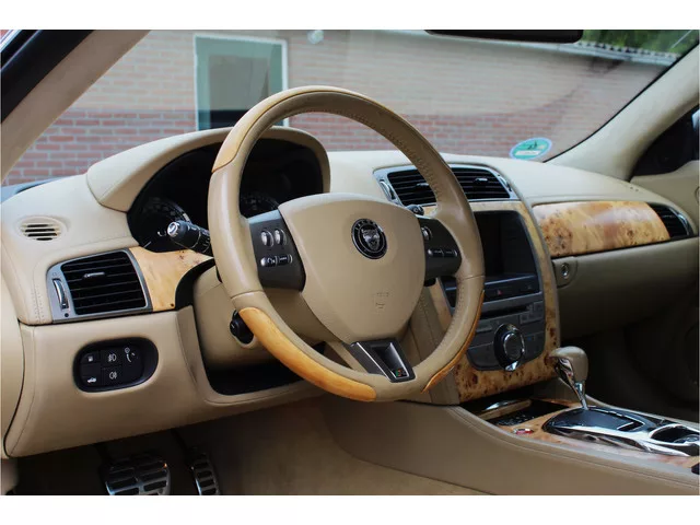 Land Rover - Range Rover - Jaguar Specialist J van Dreven biedt aan : Een Zeer mooie en goed onderhouden Jaguar XKR V8! Stuurwiel verwarming, Navigatie, Elektrisch verstelbare en verwarmbare stoelen, Cruise Control, Kleppensysteem in uitlaat !! Youngtimer Regeling ! Marge ,maar voor de ondernemer een btw factuur te realiseren ! 6 versn., Automaat; Modelreeks: sep. 2006 - feb. 2009; Achterwielaandrijving; 307 kW; 560 Nm; 8 cilinders; 4.196cc; Gewicht: 1.670kg; Laadvermogen: 410kg; GVW: 2.080kg; LxBxH: 479x191x132cm; Wielbasis: 275cm; 71l tank; 0-100 km/h: 5,2s; Topsnelheid: 250km/u; Interieurkleur: Beige; 4 zitplaatsen; 12,3 l/100km; 19,1 l/100km; 8,6 l/100km; 294 g/km CO₂; Energielabel G; Euro 4; Aantal eigenaren: 5; APK: tot mei 2026; 2 sleutels (2 handzenders); Wegenbelasting: € 295-€ 326p/kwrt; € 425 p/m (informeer naar de mogelijkheden en voorwaarden); Fabrikant: Autobedrijf J. van Dreven - Land Rover Specialist Wormshoefweg 25 6741ZG LUNTEREN, NL 0318482005...