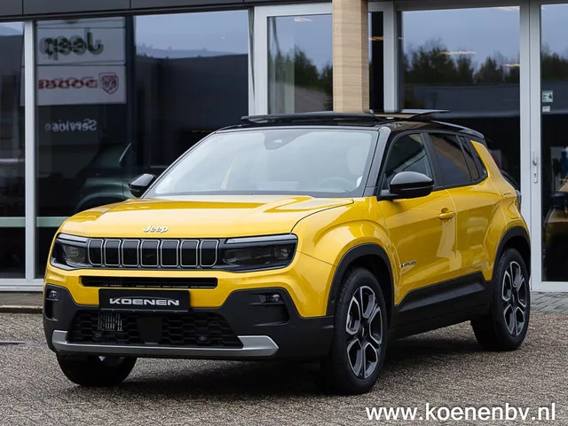 Zoekt u een overcomplete Jeep Avenger Summit? Wij hebben deze op voorraad! Voorzien van alle mogelijke opties: leer, panoramadak, 18" LM velgen, adaptive cruise control. De auto is tevens voorzien van een automaat. Meer informatie: Nieuwe auto; Vermogen: 74 kW (101 PK); Aantal cilinders: 3; Motorinhoud: 1.199 cc; Ledig gewicht: 1.263 kg; 5 zitplaatsen; Gemiddeld brandstofverbruik: 4,9 l/100km (1 op 20,4); Motorrijtuigenbelasting: € 192 - € 211 per kwartaal