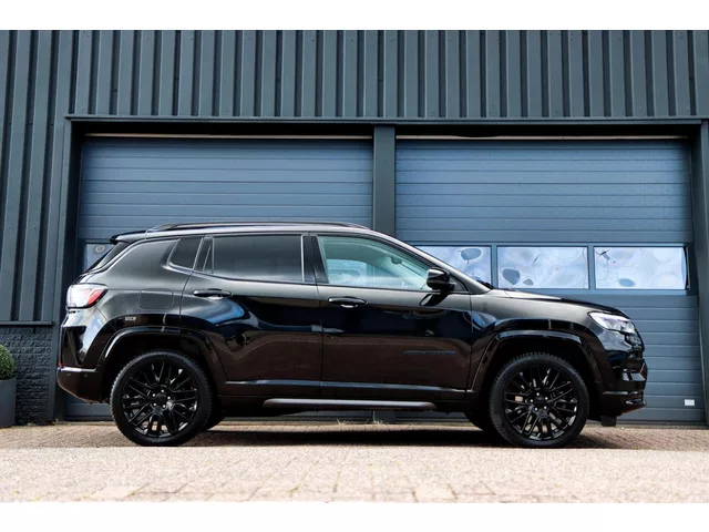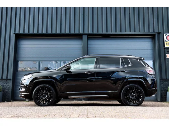 Jeep Compass 4xe 240 Plug-in Hybrid S /CAMERA/STOEL+STUURVERW./CARPLAY/ACC/KEYLESS/TREKHAAK! Kenteken: HPT-84-S; Merk: Jeep; Model: Compass; APK tot: 20-05-2027; Tellerstand: 61235 KM; Carrosserievorm: SUV; Aantal deuren: 5; Brandstofsoort: Hybride (Elektrisch/Benzine); Bouwjaar: 2022; Transmissie: Automaat; Kleur: zwart; Motorinhoud: 1332 cc; Aantal cilinders: 4; Vermogen: 176 kW / 240pk; Ledig gewicht: 1835 kg; Aantal zitplaatsen: 5; Verbruik: 1.9 l/100 km; BTW/Marge: Marge, de BTW is niet aftrekbaar. Pakket: Winter pack. Ruitensproeiers/wisserbladen verwarmbaar; Stuur leder; Stuur verwarmd; Verwarmde voorruit; Voorstoelen verwarmd. Comfort. Cruise control; Regensensor. Exterieur. Achterruitverwarming; Andere dakkleur; Buitenspiegels elektrisch inklapbaar; Buitenspiegels elektrisch verstel- en verwarmbaar; Buitenspiegels elektrisch verstelbaar; Buitenspiegels in carrosseriekleur; Buitenspiegels met verlichting; Buitenspiegels verwarmbaar; Bumpers in carrosseriekleur; Centrale...