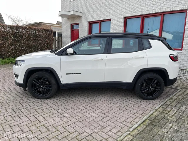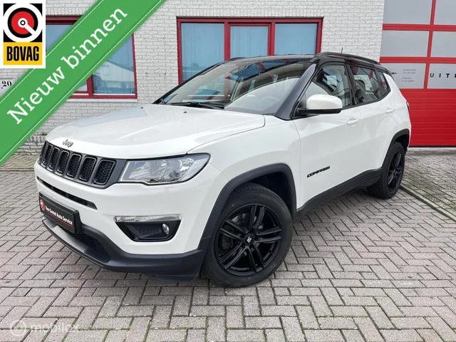 Jeep Compass 1.4 MultiAir Limited/LEER/NAVI/CAMERA/CRUISE. Merk: Jeep; Model: Compass; APK tot: 08-03-2027; Tellerstand: 83336 KM; Carrosserievorm: SUV; Aantal deuren: 5; Brandstofsoort: Benzine; Bouwjaar: 2019; Transmissie: Handgeschakeld 6; Kleur: wit; Bekleding: Leder/Stof; Kleur interieur: zwart; Motorinhoud: 1368 cc; Aantal cilinders: 4; Vermogen: 103 kW / 140pk; Ledig gewicht: 1405 kg; Aantal zitplaatsen: 5; Verbruik: 6.2 l/100 km; BTW/Marge: Marge, de BTW is niet aftrekbaar; Aantal sleutels: 2; Onderhoudshistorie aanwezig: Ja. Comfort. Cruise control; Regensensor. Exterieur. Bi-xenon koplampen; Buitenspiegels elektrisch inklapbaar; Buitenspiegels elektrisch verstel- en verwarmbaar; Buitenspiegels elektrisch verstelbaar; Buitenspiegels in carrosseriekleur; Buitenspiegels verwarmbaar; Centrale vergrendeling met afstandsbediening; Chroom delen exterieur; Dakrails; Dimlichten automatisch; Extra getint glas achter; Koplampreiniging; LED achterlichten; LED dagrijverlichting...