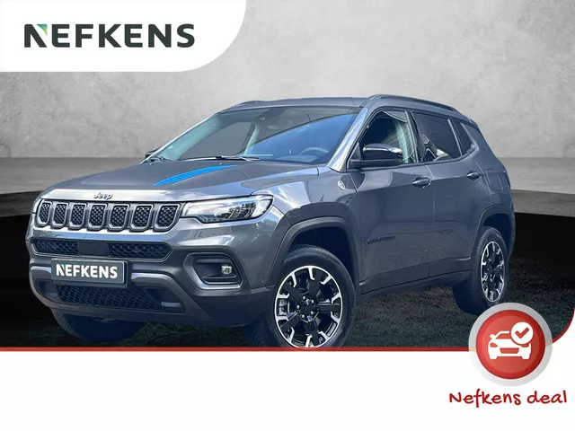 Leuke stoere Jeep Compass 4X4 AUTOMAAT met zuinige en krachtige 1.3 Turbo 240pk HYBRIDE motor. Luxe Trailhawk  uitvoering met oa. lichtmetalen velgen 17", navigatiesysteem, climate airco, cruise control, lederen stuur, mistlampen, ACHTERUITRIJCAMERA, privacy glass, LED lampen, navigatiesysteem, AppleCarPlay/Android auto voor oa navigeren via Google Maps, parkeersensoren voor + achter, licht/regensensor, keyless entry/starten, Jeep multimediasysteem met bluetoothvoorbereiding en electrische ramen/spiegels. Laat u niets wijsmaken, deze Jeep Compass biedt alles wat u van een auto verlangt. Deze auto uit 2022 heeft 60.146 kilometer gelopen. Brandstofmotor, elektromotor? Deze hybride Jeep Compass combineert ze. En dat is te merken bij de pomp, want die ziet u voortaan minder vaak. . Laat het ons meteen weten als u interesse heeft in deze auto, dan kunnen we een afspraak maken om u de auto te demonstreren. Nefkens: Al bijna 150 jaar jouw mobiliteitsleverancier met vestigingen door heel...