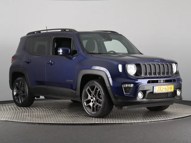 Jeep Renegade 240 S in een unieke blauwe kleur! Auto is volledig onderhouden en staat op goede all season banden. 6 versn., Automaat; Modeljaar: 2020; 4WD; 0 kW; 270 Nm; 4 cilinders; 1.332cc; Gewicht: 1.745kg; Laadvermogen: 570kg; GVW: 2.315kg; Max. trekgewicht: 1.150kg; LxBxH: 424x181x172cm; Wielbasis: 257cm; Accu: 11kWh, Type lithium-ion; Accu laden: Type 2, 1-fase, 7.4 kW; Accu snelladen: nee; 37l tank; Actieradius: 54 km; 0-100 km/h: 7,1s; Topsnelheid: 199km/u; 5 zitplaatsen; 2,1 l/100km; 15,7 kWh/100km; 46 g/km CO₂; Energielabel A; Euro 6; Onderhoudsboekjes aanwezig; 2 sleutels (2 handzenders); BOVAG Garantie (6 maanden); Wegenbelasting: € 307-€ 335p/kwrt; vanaf € 336 p/m (informeer naar de mogelijkheden en voorwaarden); Beschikbare afleverpakketten: Basis Service Pakket (zonder meerprijs); Full Service Pakket (€ 895); JXJ-63-H