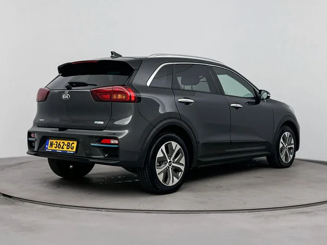 Efficiënte techniek en ongekende dynamiek. Het plezier van elektrisch rijden gaat in deze Kia e-Niro samen met een spaarzaam stroomverbruik. Je zult verrast zijn door de power van de elektromotor. En stil! Op de teller van deze auto staat slechts 36828 kilometer. Lekker hoor, die verwarmbare voorstoelen. Helemaal op koude dagen. Het elektrisch bediende glazenpanorama dak zorgt voor licht en gevoel van ruime. Wind, sneeuw, hagel, regen... allemaal vergeten als je het verwarmd stuurwiel in handen hebt. Ook 17 inch lichtmetalen velgen, LED koplampen, extra getint glas, in delen neerklapbare achterbank en LED-achterlichten zijn aan boord. Bij het inparkeren hoef je het laatste stukje niet te gokken: de achteruitrijcamera kijkt voor je uit. Adaptive cruise control houdt de ingestelde snelheid vast en houdt automatisch afstand tot jouw voorligger. Spraaksturing betekent dat je verschillende functies met jouw stem kunt bedienen. Nooit meer de weg kwijt: daarvoor zorgt het onboard full map...