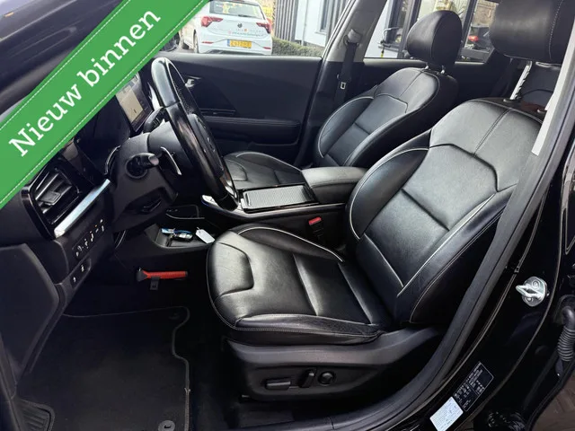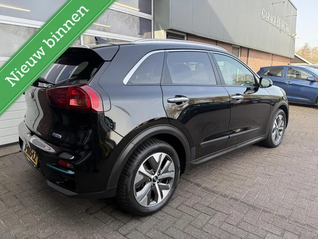 Kia e-Niro ExecutiveLine 64 kWh 3 FASE 95% SOH *ALL-IN PRIJS*. Kenteken: J-965-LZ; Merk: Kia; Model: e-Niro; APK tot: 17-09-2026; Tellerstand: 118706 KM; Carrosserievorm: SUV; Aantal deuren: 5; Brandstofsoort: Elektrisch; Accucapaciteit: 64 kWh; Actieradius: 455 km; Bouwjaar: 2020; Transmissie: Automaat; Kleur: zwart; Bekleding: Leder; Kleur interieur: zwart; Motorcode: EM16; Vermogen: 150 kW / 204pk; Ledig gewicht: 1712 kg; Aantal zitplaatsen: 5; BTW/Marge: BTW aftrekbaar, de prijs is inclusief BTW; Lengte: 438 cm; Breedte: 181 cm; Aantal sleutels: 2; Onderhoudshistorie aanwezig: Ja; Motorrijtuigenbelasting: € 214 - 234 per kwartaal; Emissieklasse: Euro Z. Comfort. Regensensor. Exterieur. Buitenspiegels elektrisch inklapbaar; Buitenspiegels elektrisch verstelbaar; Buitenspiegels verwarmbaar; Chroom delen exterieur; Dakrails; Dimlichten automatisch; Elektrisch glazen schuif-/kanteldak; Extra getint glas achter; Keyless entry; LED achterlichten; LED dagrijverlichting; LED koplampen...